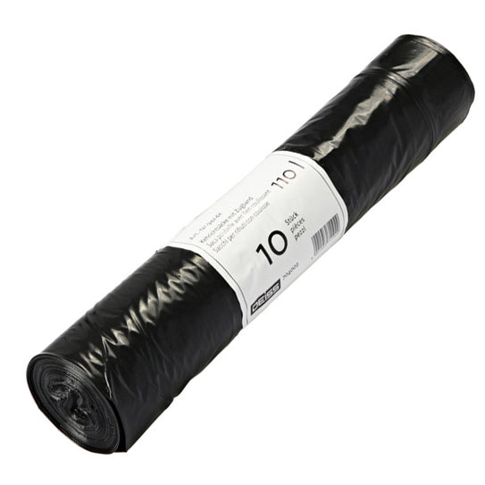 110 Liter, LD-PE Recycling, schwarz, 730 × 1000 + 50 mm, 0,045 mm, Rolle à 10 Säcke